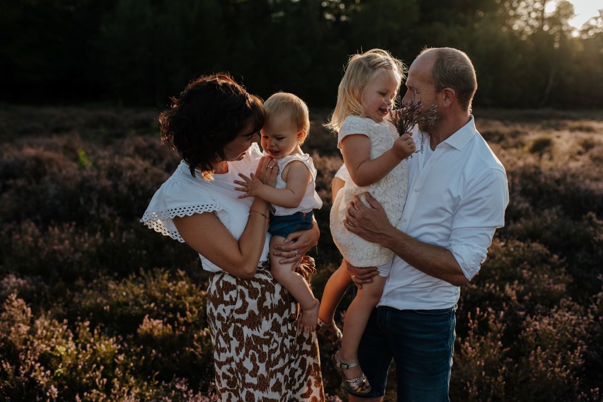 De meeste gezinsshoots doe ik buiten, in de natuur van Friesland. Op plekken waar ruimte is en waar kinderen lekker vrij kunnen bewegen. Denk aan de bossen van Beetsterzwaag, de heide bij Bakkeveen of de omgeving van Appelscha.