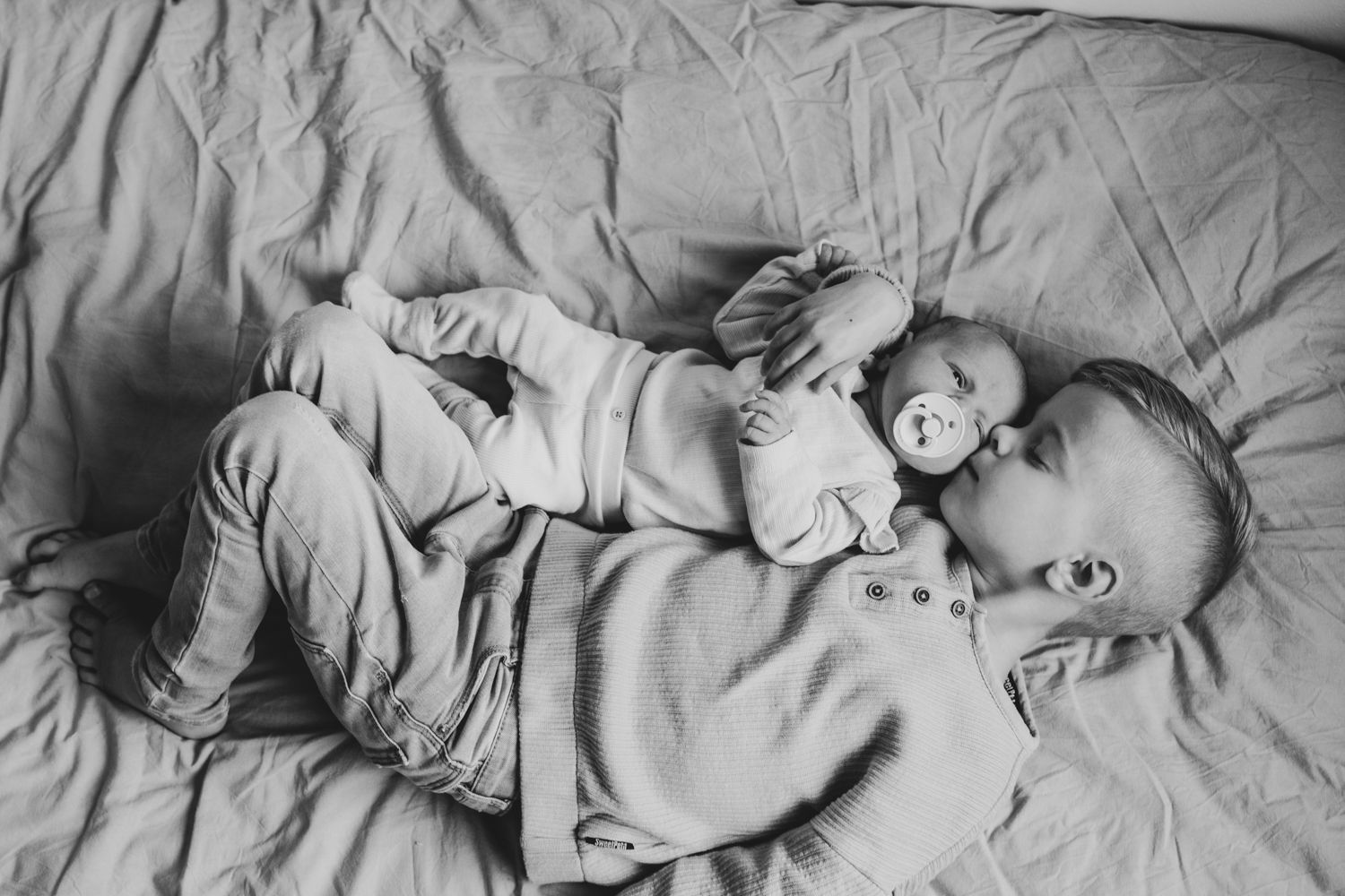Daarna gaan we van start. Ik gebruik vaak de ouderslaapkamer en de woonkamer als basis voor de fotoshoot. Alles wat er dan gebeurd, leg ik voor jullie vast. Ook als er gevoed of verschoond moet worden. Als de oudere broer of zus aan het omrommelen is en nieuwsgierig komt kijken. Die onvoorspelbare momenten zijn precies wat ik wil vastleggen voor jullie.