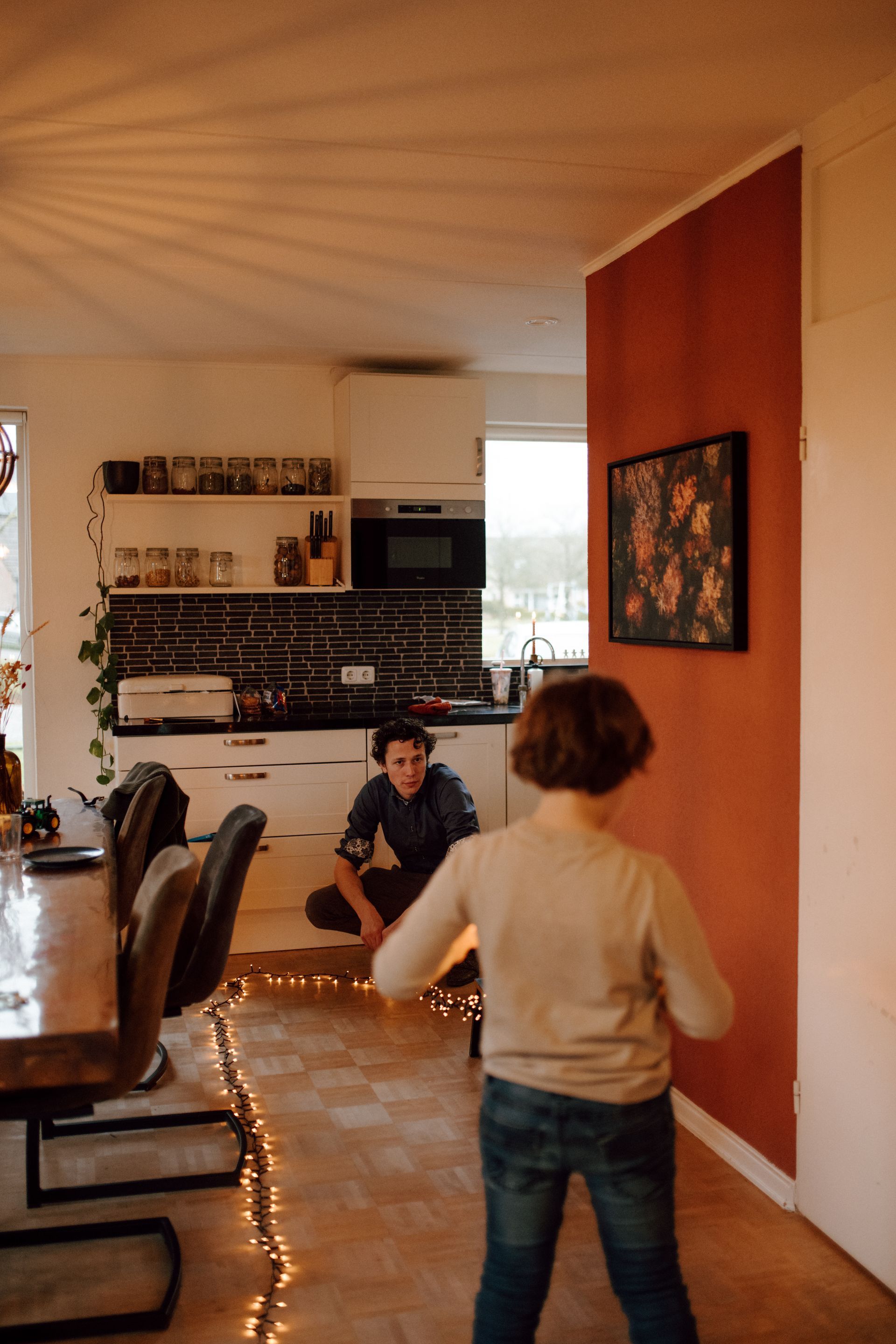Ik hoop dat jullie over 20 jaar samen kerst vieren, rond een gezellige tafel, genietend van elkaars gezelschap. Dat jullie herinneringen ophalen over het optuigen van de boom, de knopen in de lichtjes, en wie toch altijd de piek mocht plaatsen. Naast die herinneringen hoop ik ook dat jullie kunnen lachen om details uit die tijd, zoals de bank en de vloer. En wie weet, misschien zeg je dan: "Pak dat fotoboek erbij met die prachtige foto's die die fotograaf toen voor ons heeft gemaakt!"